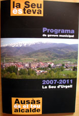Senzill, esquemàtic i molt organitzat per temes, amb referències d’un tema a un altre. Posa la xarxa al servei del candidat (web i alguna proposta marca de la casa, com la del bloc de l’alcalde). Referents pirinencs i catalans. Èmfasi, on toca, de la importància de fer del català l’idioma vehicular dels nouvinguts de la Seu. Idea de ciutat pensant més enllà del 2011. Pilars del desenvolupament econòmic bastant clars. L’equip més paritari: 9 homes i 8 dones. Rang d’edats: de 23 a 76 anys, mitjana de 46. Hi manca un repàs de la feina feta, sembla que comencin de zero.