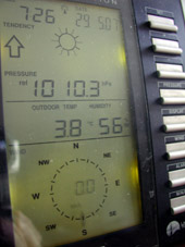 Aquests dies, amb la moguda de les eleccions, no he penjat res del temps, que ha estat distret. Comencem per la mínima d’ahir a la Seu, de només 5,7ºC, i la d’avui: uns frescos frescos 3,8ºC. No recordo cap mínima tan baixa un final de maig (a principi de mes la fa, i més, gairebé cada any, però no pas a les acaballes, com avui). Al riu, arran d’aigua, segur que ha gebrat. Ahir Déu n’hi do la refrescada. El Cadí es va enfarinar, l’Orri i la serra de Bescaran també. L’amic i company de feina, Jordi Nicolau, em va comentar que a la part alta d’Arinsal, a menys de 1.600 m., hi havia uns 3 dits de neu, i a sobre Encamp, un altre amic, el Jose Antonio Sánchez, també va xafar neu. Els cops de mestral van ser durs, però ja sabeu que el meu anemòmetre fa el ximple. Pel que fa al repàs de pluja, que la tenia una mica descuidada, les dades d’aquests darrers dies són: el dia 25: 3,5 mm; el dia 26: 7 mm i el dia 27: 2,5 mm. Les primeres d’aquests pluges, i algunes gotellades inapreciables, van ser de fang. Així doncs, canvi total de situació: de vents càlids i empolsonats del sud, a vent fred i nivós del nord. La foto dóna fe de la mínima d’avui. L’hora i la data són exactes, la pressió atmosfèrica segurament no.