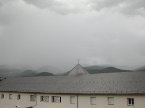 Déu n’hi do, l’aigua que ha caigut entre diumenge i ahir dilluns. Diumenge van caure 39 litres en dues hores, de 6 a 8 de la tarda. A TV3 van dir-ne 55. Potser era la dada de l’estació automàtica de la Seu, que està a l’abocador de Benavarri. Ja fa temps que crec i dic que és un error tenir l’estació oficial de la nostra ciutat allunyada un parell de kms en línia recta del casc urbà, i a una cota sensiblement més elevada. Això es nota en les tronades d’estiu perquè en poca distància els litres caiguts varien força, i, sobretot, en la inversió tèrmica a l’hivern. És típic sentir, llegir o consultar per internet que a la Seu estem a -3ºC, quan en realitat estem a -6ºC, per exemple. Bé, déiem que diumenge va ploure fort. Hi va haver un moment que va caure una miqueta de calamarsa, però com que en sap molt, no va passar d’aquí. I ahir dilluns, doncs sant tornem-hi. Va fer tres xàfecs que can deixar 7 (cap a les 14h.), 3.5 (a les 18h.) i 21.5 litres més (des de les 21h. fins més enllà de mitjanit -buido el pluviòmetre a les 6:20 d’aquest matí-). En total, doncs, 32 litres, que sumats als 39 d’abans d’ahir fa que en portem 71 en dos dies. I el que falta, perquè suara torna a ploure una mica i el radar diu que en ve una del Pallars, a veure si arriba (em fa l’efecte que sí, i de ple, perquè la imatge de fa 3 minuts mostra una franja verda de precipitació que abraça tot el nord-oest de l’Alt Urgell, i apunta directa cap a nosaltres!). De moment, ja és l’agost més plujós dels darrers 5 anys, i per poc que faci s’atansarà al del 1996, quan van caure 174 litres i els rovellons corrien per la Seu el dia de la festa major. El Retaule de sant Ermengol encara no s’ha pogut representar, i ja són dues funcions suspeses. Aviam si hauran d’acabar invocant l’altre sant patró meteorològic (sant Ot)!