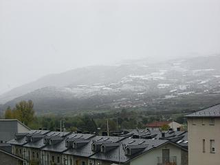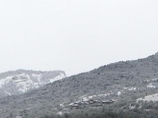 Algunes fotos de la nevadeta i els voltants de la Seu a migdia. Dades de les 11:55= 4,4ºC, 72% hr i 1001,8 Hpa (pressió baixant, en ve més?). La neu torna a baixar per l’obaga de la Seu. Comparant el que es veu des de casa amb les càmeres de mobilitat d’Andorra, diria que ha nevat més a Artedó, Vilanova de Banat, etc que no pas al Principat veí. Miro el radar del Meteocat i es veu una massa que dóna precipitació intensa i continuada a l’Anoia, Bages, etc, i que puja cap al nord. Deu ser, doncs, la nova nevada que comença a caure a la façana sud de la Seu. A veure si ens arribarà!