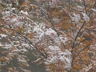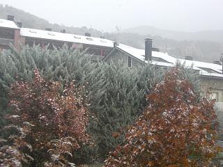 Ahir sí que va començar la temporada de neu al Pirineu. A la Seu també, encara que de manera més aviat testimonial. Sigui com sigui, fou la primera nevada de la temporada, i agafà molts caducifolis encara vestits de tardor, com ara el besurt i els erables de les fotos, fetes des de casa. Ja en portem una! Entre les 8:20 i les 9:20, si fa no fa, va nevar amb ganes; cap cosa de l’altre món, però pels bojos per la neu feia goig. Ho féu a 0,4ºC i s’agafà ràpidament als llosats (gebrats de la matinada), vegetals, cotxes, etc. Un cm com a molt que de seguida es fongué. Al vespre va ploure i aiguanevar a 2,5ºC. A la una de la matinada d’avui ha acabat nevant a 1,8ºC, però ha estat la traca final i tot just a fer una pasta que aviat s’ha fos. Han caigut 13 litres. Aquest novembre en portem 19, i a l’octubre en caigueren 57. El 2009 en portem 569. A Civís va caure-hi un pamet (20, 22, 24 cm?), a Ransol 50 i a Baguergue (el poble més alt de l’Aran) 60. A les cotes més altes del país occità diuen que un metre!