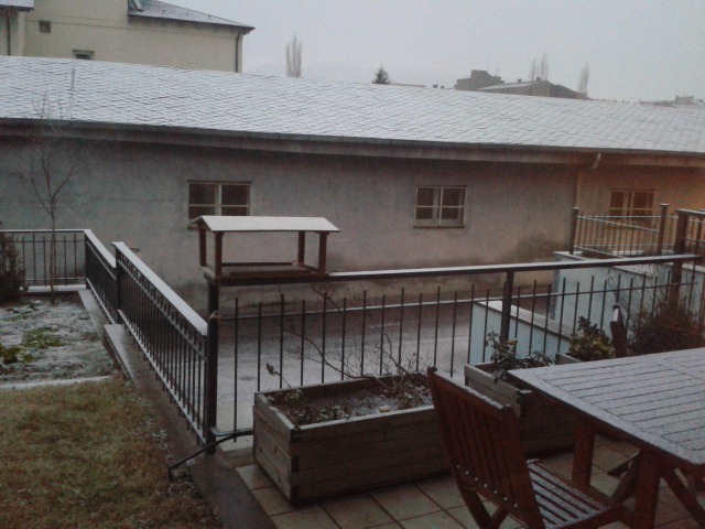17-04-12, 2 gralles (Corvus monedula) volant sobre el col·legi Pau Claris i una altra reclamant des del seminari de la Seu d’Urgell.