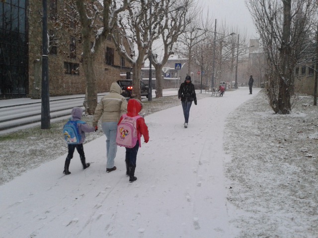 22-03-12, Festival de migradors sedimentats a la vora del Segre a la Seu, a causa d’una intensa nevada: