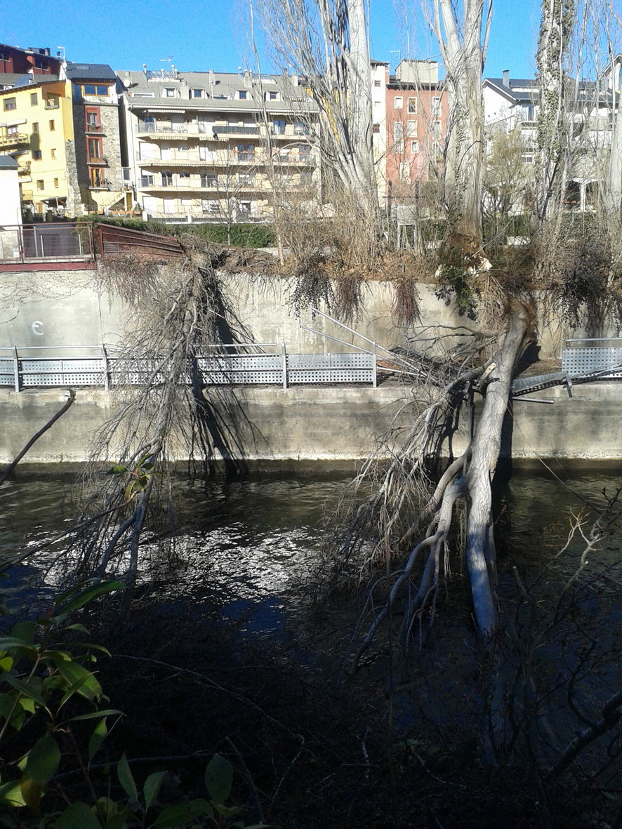 La matinada del diumenge 25 de gener la ventada va ser brutal a la Seu. Molts veïns de la població vam sentir els udols d’una venteguera com poques se n’ha patit a la nostra ciutat. Lamento no tenir dades de velocitat perquè el meu anemòmetre fa la perla, però ateses les conseqüències a l’arbrat i infraestructures urbanes, és més que probable que depasséssim els 100 km/h. El 4 d’agost de l’any passat, també a la matinada, un esclafit de vent va aterrar un bon grapat d’oms siberians de la canalització del Segre, però no va tocar el casc urbà de la Seu. En aquesta ocasió, en canvi, hem rebut de valent. Probablement ha estat la ventada més forta de les últimes dècades. Aquí en deixo algunes imatges, però aquí en trobareu encara més, compilades per l’Albert de Gràcia i l’Andreu Martín.