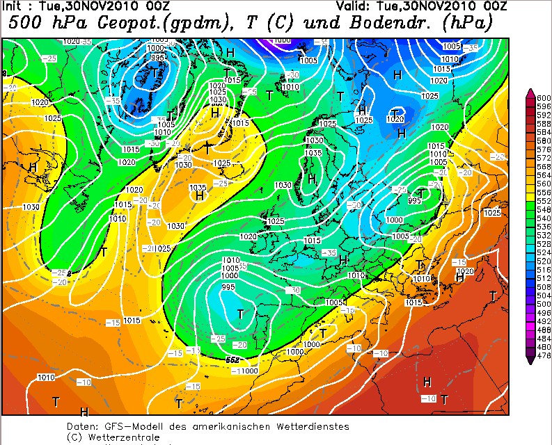Mapa de temperatures a 5.000 m d’aquell dia.