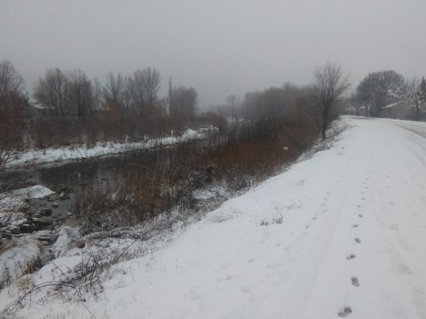 22-03-12, Festival de migradors sedimentats a la vora del Segre a la Seu, a causa d’una intensa nevada: