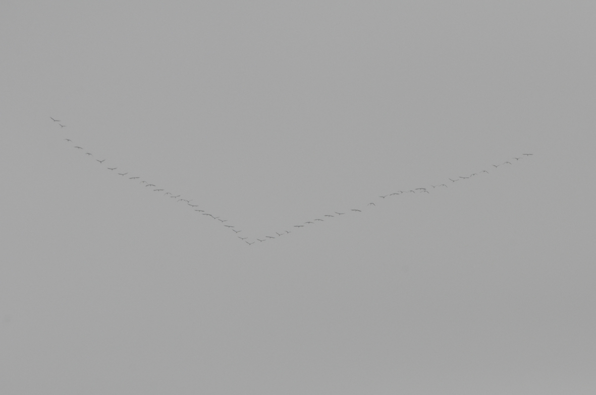 Ahir i avui han passat moltes grues per les valls pirinenques. Ahir s’estima que algun miler va passar per l’Alt Urgell, segons diversos informants, i avui mínim de 300 per l’Alta Ribagorça. Avui també, prop de Noves de Segre, n’he vist i sentit un bon estol. Comptant la composició fotogràfica de sota me n’han sortit 328. Quina meravella!
