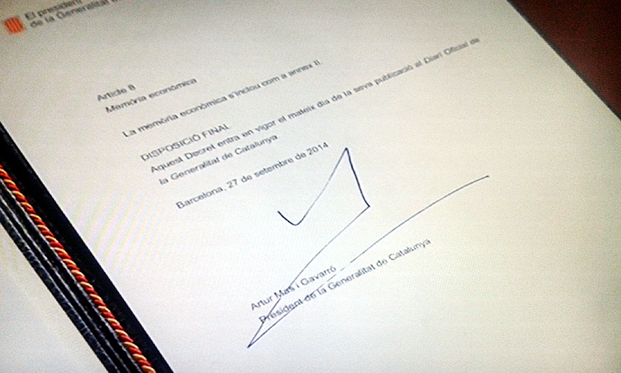 He seguit amb atenció i emoció la signatura del decret de convocatòria de la consulta del 9 de novembre. He escoltat el parlament que després ha fet el president Mas. M’he sentit orgullós del president que tenim i del procés que seguim. Ens mou un afany noble, una esperança indestructible, un futur nostre. Gran Mas.