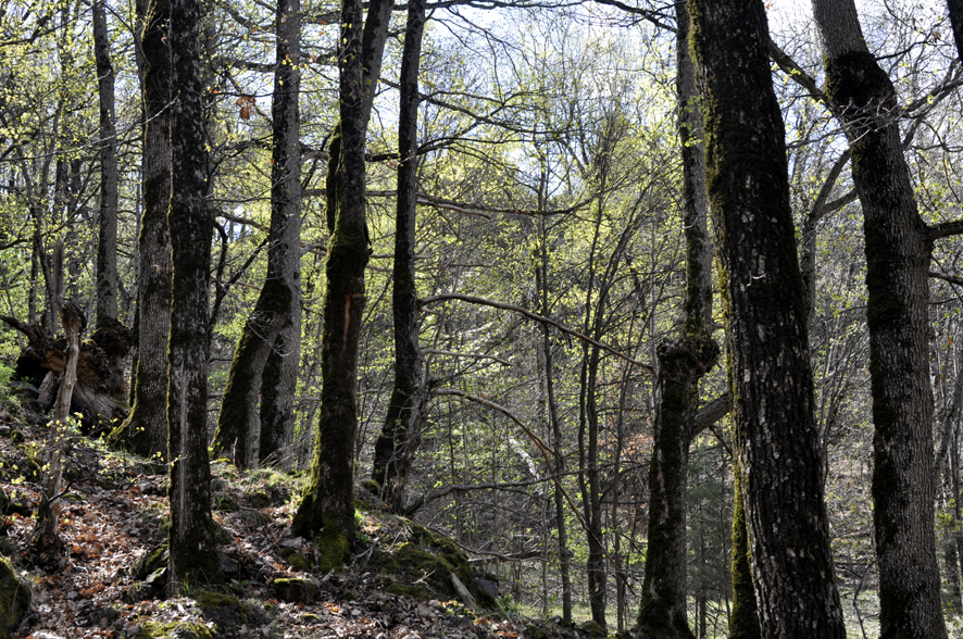 Tenim 30 arbres al davant. Tots són alts i brancalluts, de capçades espesses i troncs molt junts els uns dels altres. Hi ha un camí que passa per entremig seu amb diversos trencants. La via principal mena fins al capdamunt del turó de sobre, però aquests 30 arbres no el deixen veure. Dels trencants en surten corriols que travessen la vall i se’n van cap als vessants del costat.