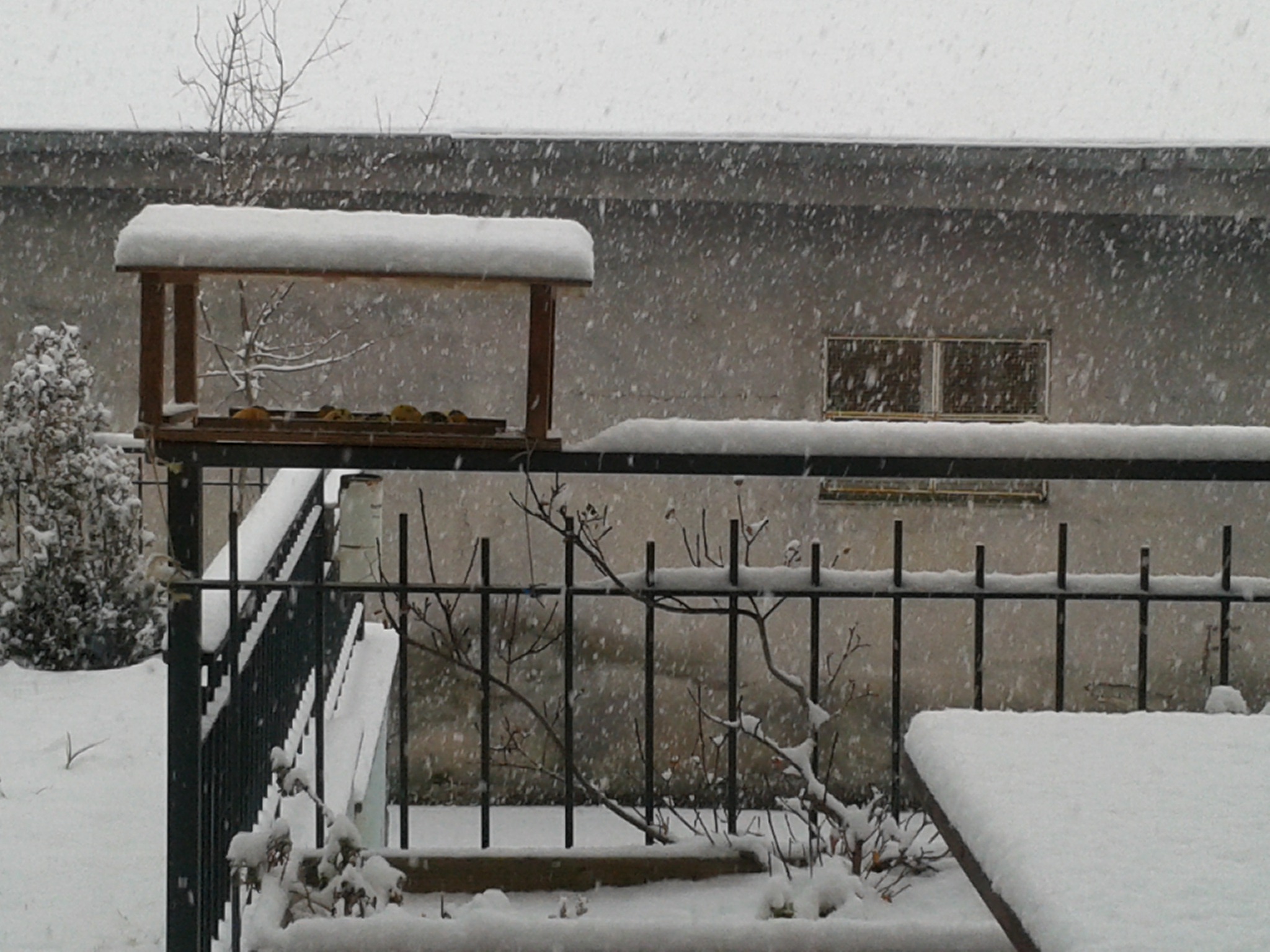 La previsió l’ha clavada: està nevant amb ganes a tot el Pirineu. A la Seu ha començat a les 6:27, però de manera mooolt tímida i feble. Després ha parat i cap a 1/4 de 8 hi ha tornat i ja no ha parat. De primer era suau i menuda, però al llarg del que portem de matí ha anat agafant empenta i ara, a les 11:07, portem 8,5 cm de neu seca a tot arreu, i continua a molt bon ritme. De les 10 a les 11 n’hi ha posat 4,5 cm. Si continua així unes quantes hores més n’hi posarà un bon peçonet!! A Andorra la Vella ronden els 20 cm, a Esterri d’Àneu i Llavorsí passen dels 30 i a Vielha n’hi portaven 51 a primera hora del matí!! (16 d’aquesta nit més els d’ahir). Ja era hora!! Curiosament, i m’estranya molt, no ve ni un moixó a les meves menjadores, i això que les tinc plenes a vessar! Potser perquè uns dies enrere van estar uns dies buides?? Foto de quan la nevada agafava cos, cap a les 10 del matí, amb 4 o 5 cm.20130115_100641