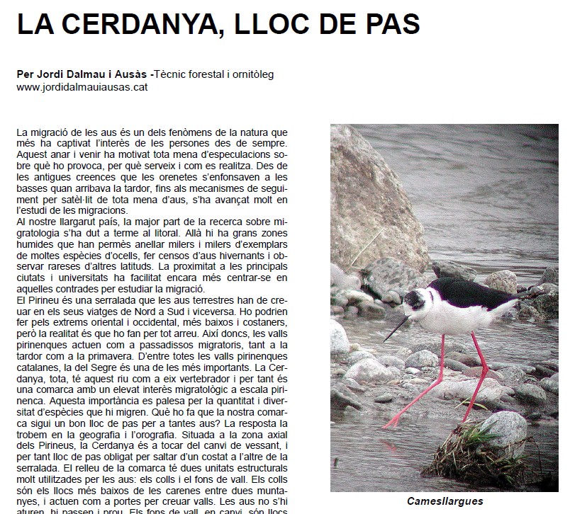 Fa unes setmanes el Grup de Recerca de Cerdanya va penjar el darrer número de la seva revista digital KER, on he tingut l’oportunitat de fer-hi un article divulgatiu sobre la importància migratològica de la veïna i estimada comarca de la Cerdanya. El trobareu en aquest mateix blog, aquí. El GRC fa una gran feina de divulgació científica. Aquí queda escrit el meu reconeixement i agraïment.