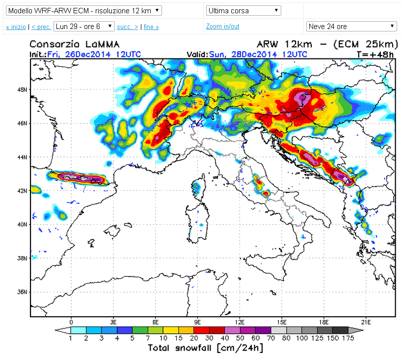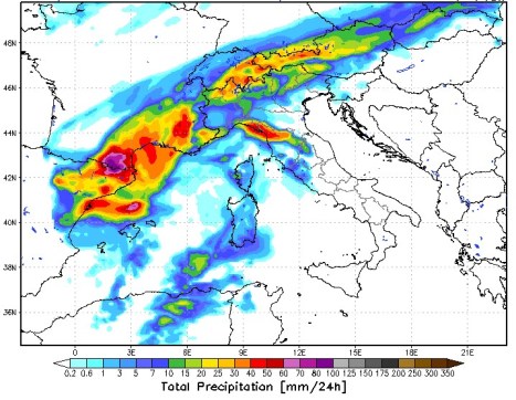 El climatòleg Pere Esteban em va ensenyar un model de previsió fet a Itàlia que afina bastant. La previsió de precipitació per demà dissabte és la que aquí veieu. Si es compleix, a la Seu cauran entre 40 i 50 litres! Demà ho sabrem.