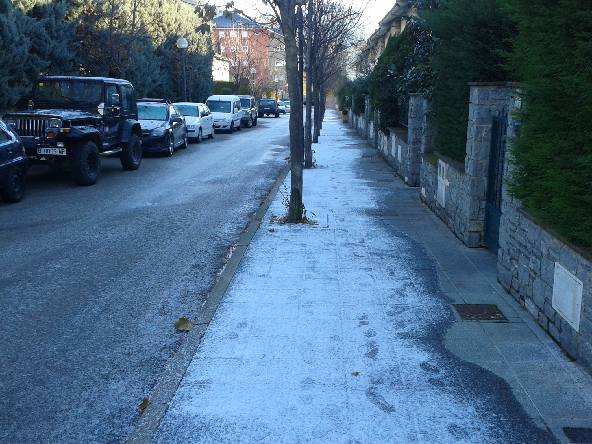… de fa 6 anys va fer una nevada ben maca a la Seu d’Urgell. Es va complir la dita Per Sant Andreu, neu per tot arreu. Els dies precedents havíem tingut mínimes ben fredes de -7 i -8 ºC i màximes baixes. El terreny estava gelat. La matinada del 30 de novembre va començar de nevar. Ho feia a -2 ºC i amb neu pols que de seguida es va estacar arreu. Va estar nevant fins a cap a les 2 del migdia i va deixar 10 cm de neu seca.